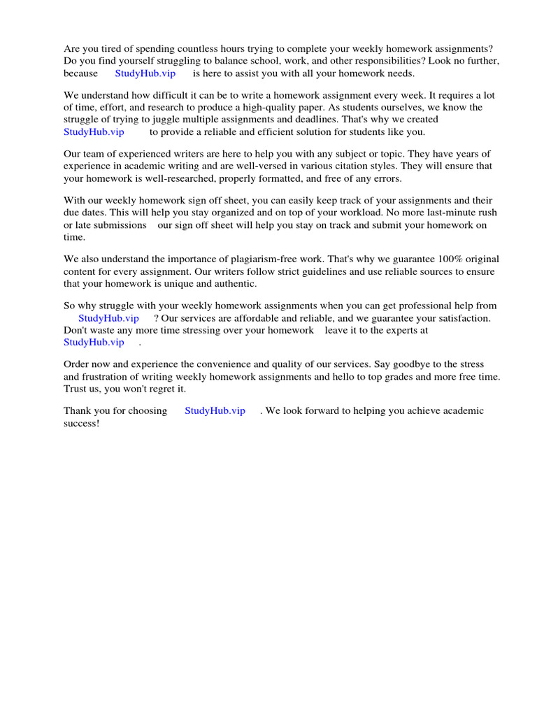 Weekly Homework Sign Off Sheet | PDF | Worksheet | Homework