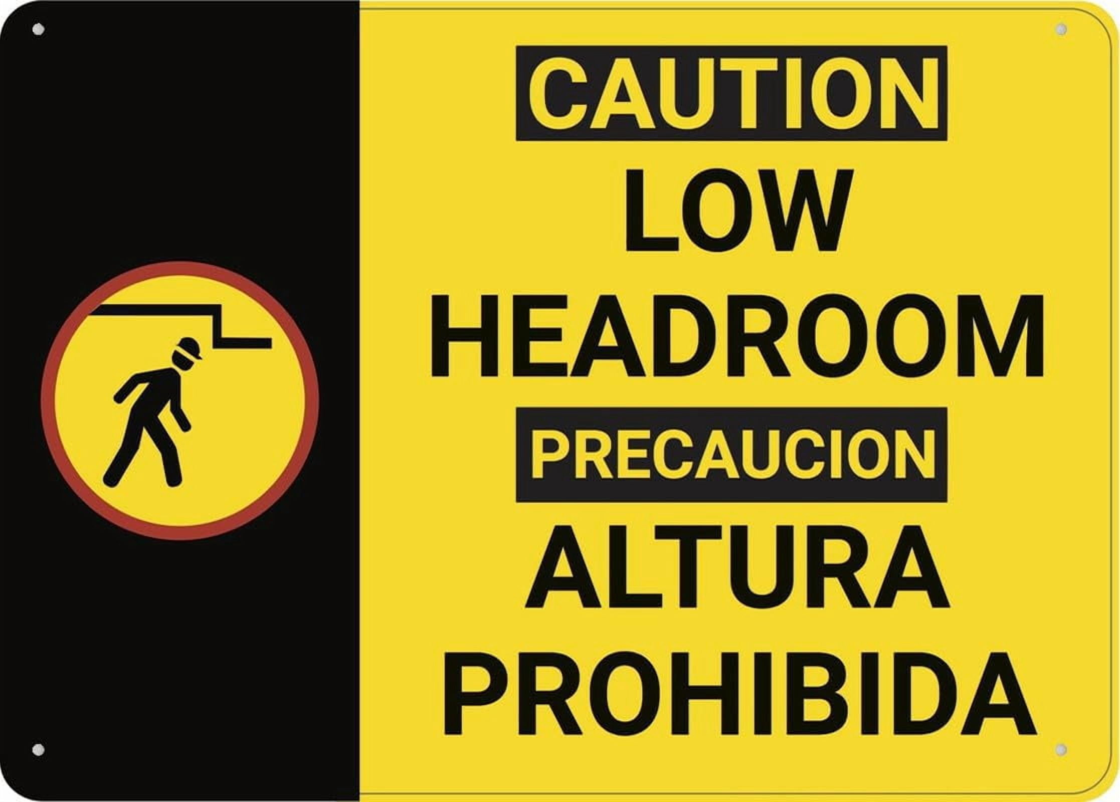 Caution Low Headroom Bilingual Spanish Sign 8X12 Inch Rust Free ...