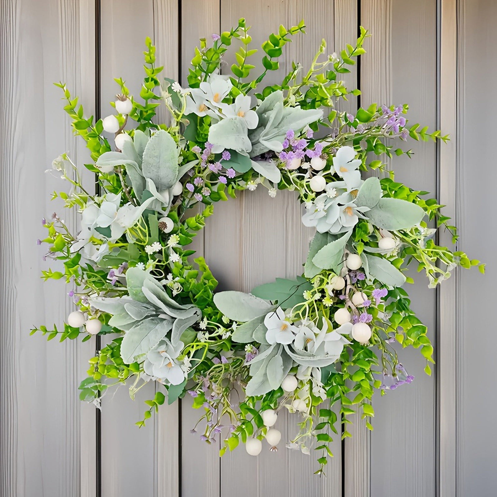 Cotton and Camellia Spring Wreath 16 in Artificial Flower Wreath for ...