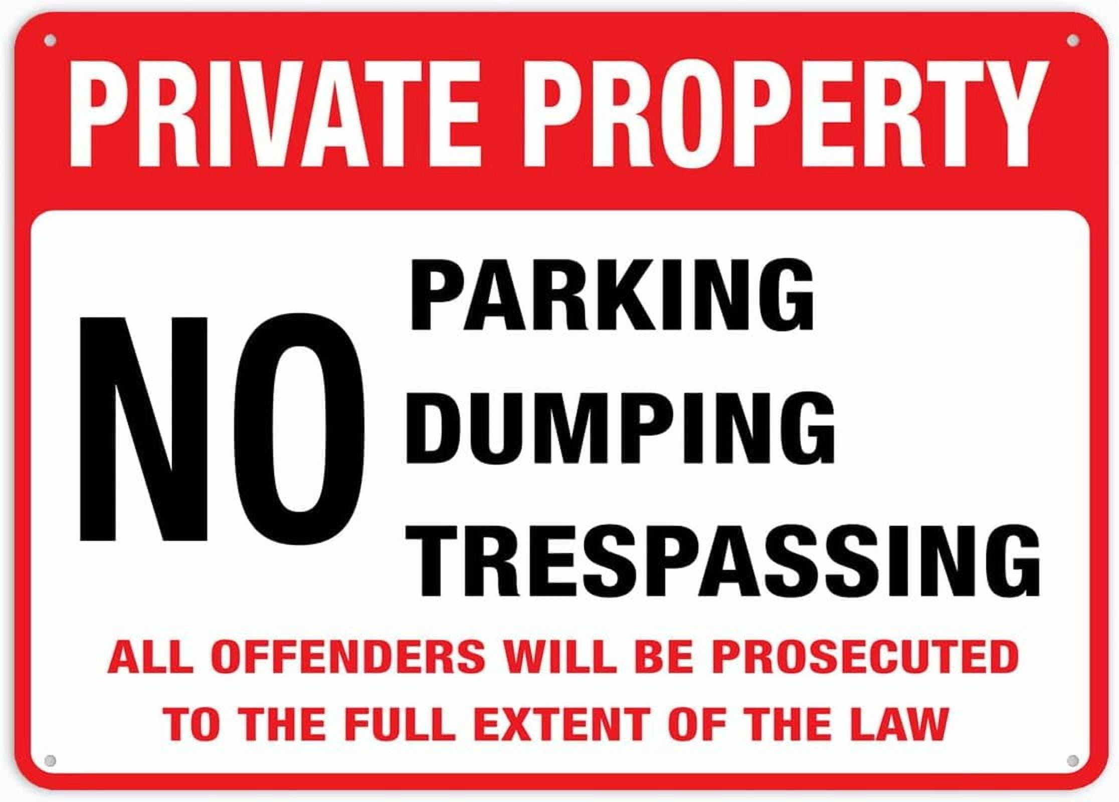 Private Property No Parking No Dumping No Trespassing 8""X12"" Rust ...