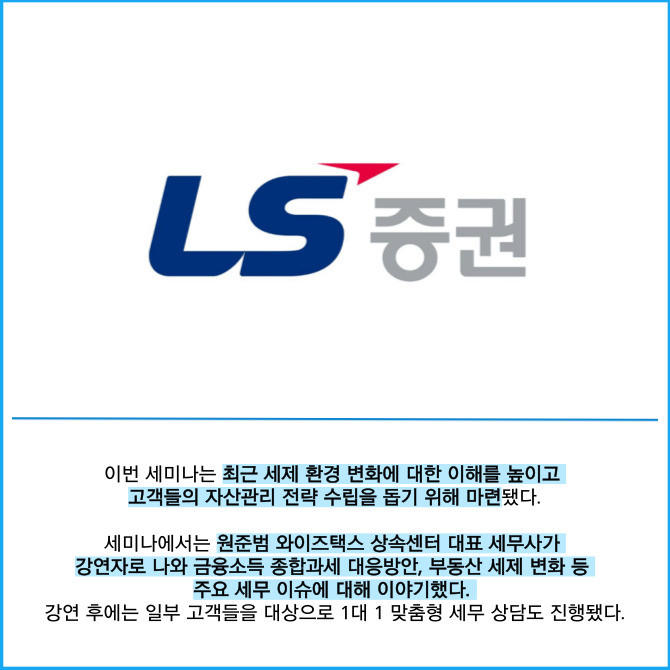 [카드] LS증권, '투혼클럽' VIP 고객 초청 세무 세미나 진행