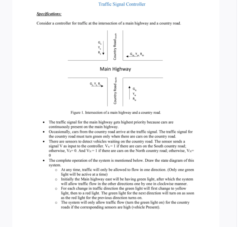 Solved Traffic Signal Controller Specifications: Consider a | Chegg.com