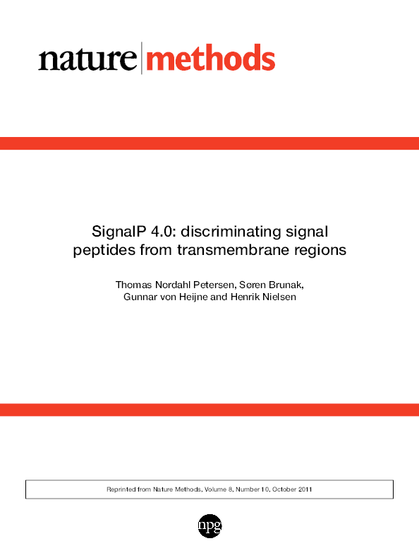 (PDF) SignalP 4.0: discriminating signal peptides from transmembrane ...