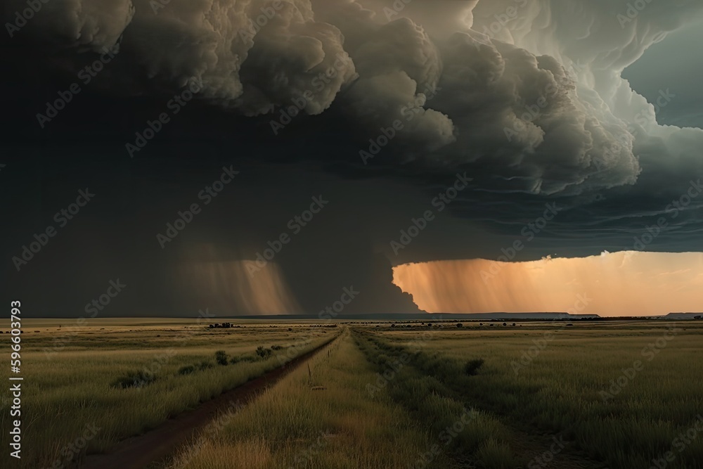 storm clouds rolling in over the horizon, signaling the approach of a ...