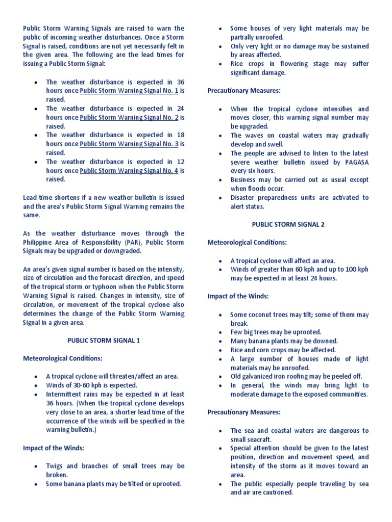Public Storm Warning Signals Explained | PDF | Natural Disasters ...