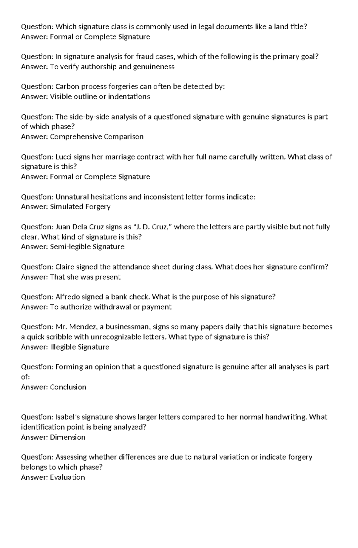 Kary Quiz: Signature Analysis and Forgery Detection Insights - Studocu
