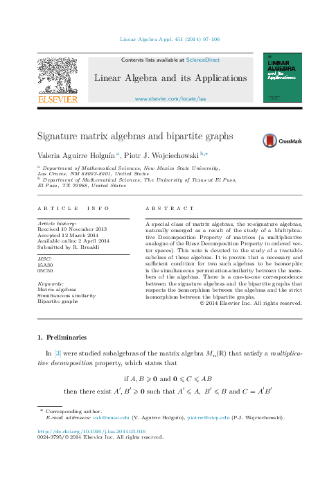 (PDF) Signature matrix algebras and bipartite graphs
