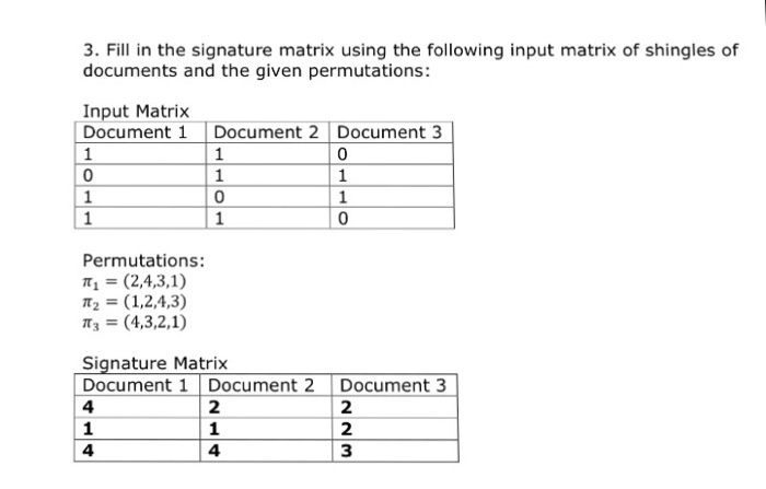 Solved Compute the signature matrix with single pass over | Chegg.com