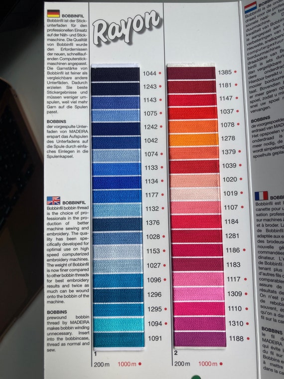 Telephone Threads AZO Free Viscose Rayon Embroidery Thread Shade Card ...