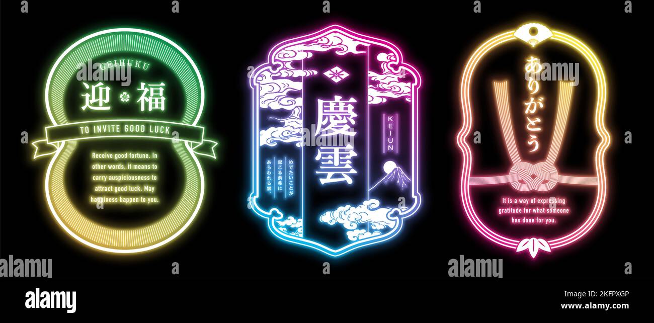 Neon signboard design horizontal label set.It is vector data that is ...