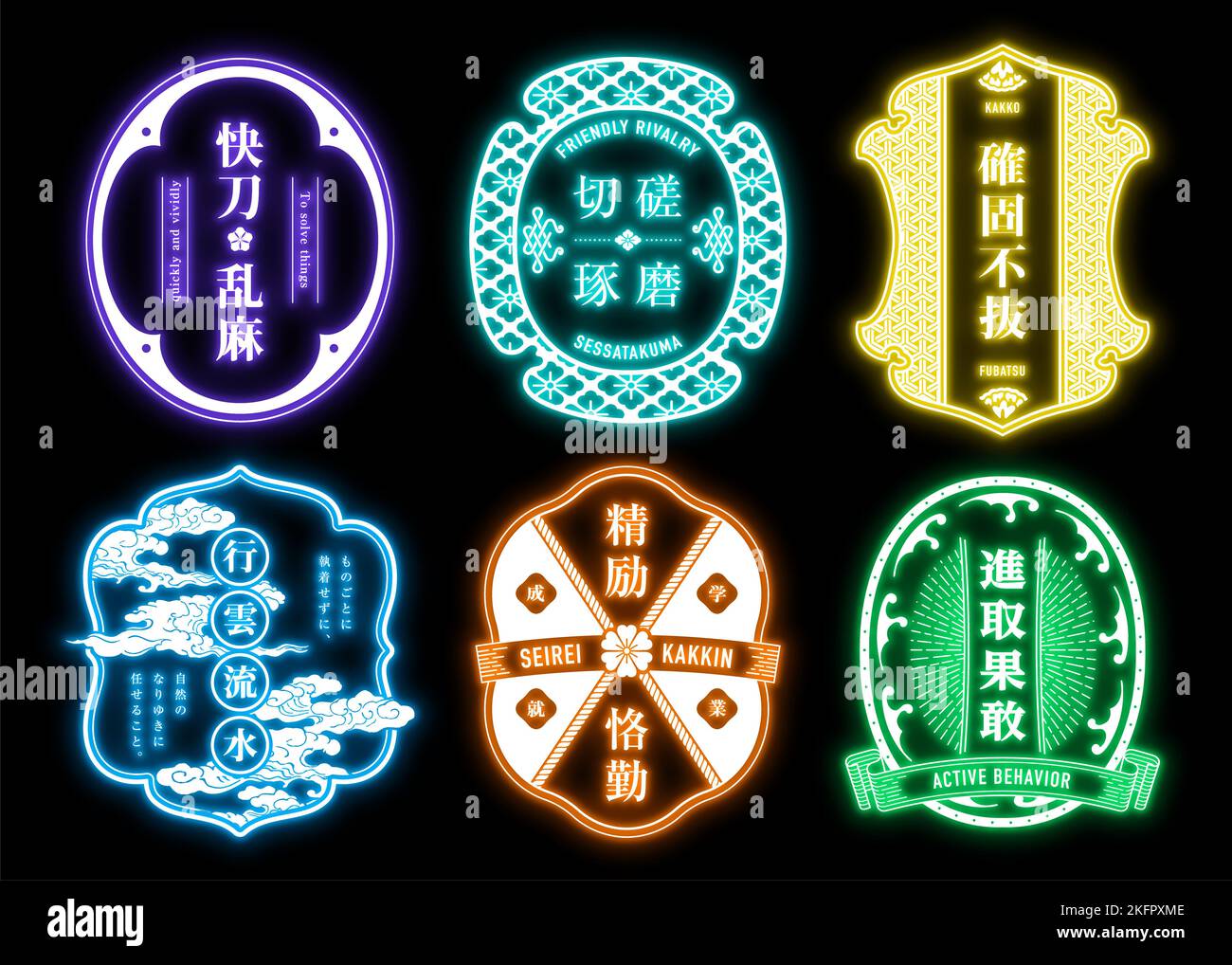 Neon signboard label set Stock Photo - Alamy