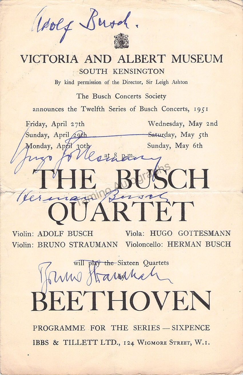 The Busch Quartet Autographs Signed Program London 1951 – Tamino Autographs