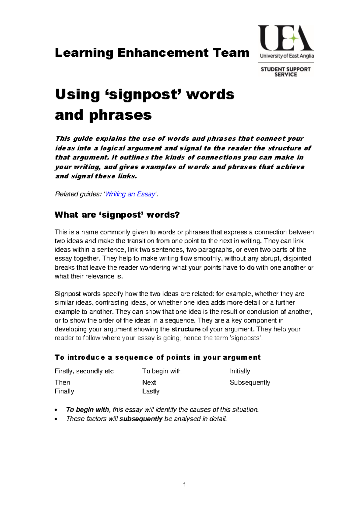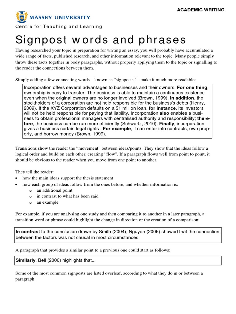 Using Signpost Words to Enhance Essay Structure and Clarity - Studocu