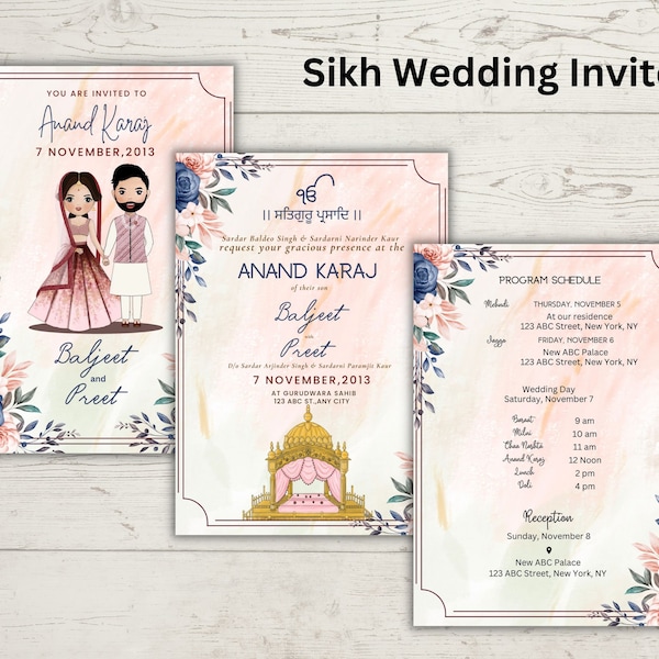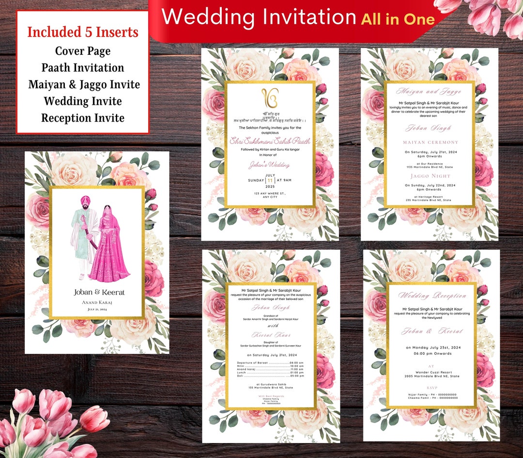 Editable Sikh Wedding Invitation Suite, Anand Karaj Invitation, Punjabi ...
