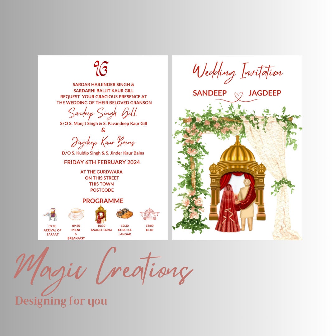 Sikh Wedding Digital Invitation, Anand Karaj Illustration Couple ...