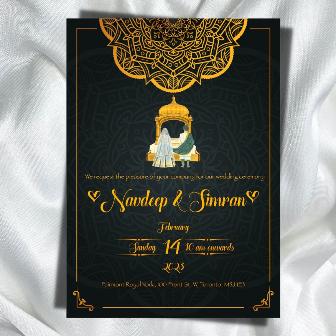 Sikh Wedding Invitation Card Digital Punjabi Wedding Invitation Anand ...