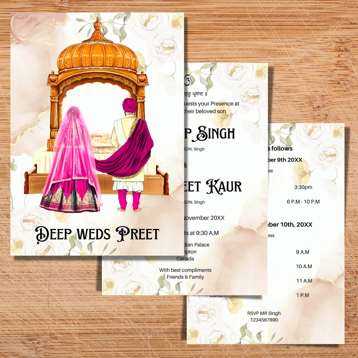 Editable Sikh Wedding Invitation Set, Luxury Sikh Wedding Invitation ...