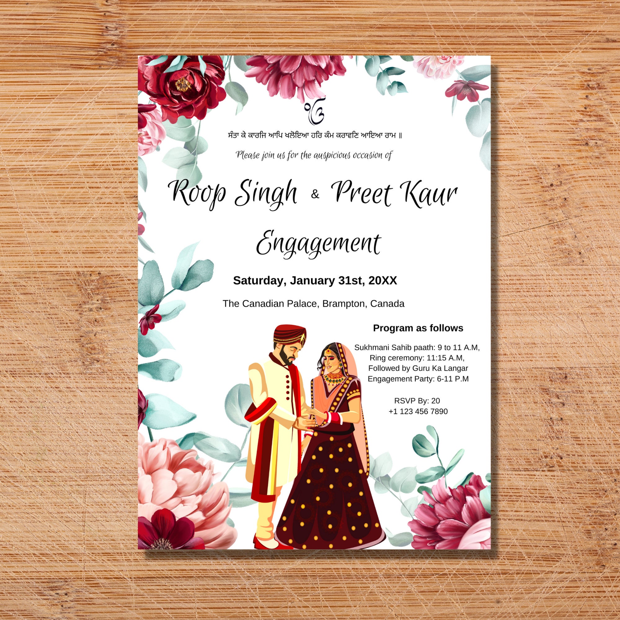 Sikh Engagement Invitation Card Digital Punjabi Engagement Invite Sikh ...