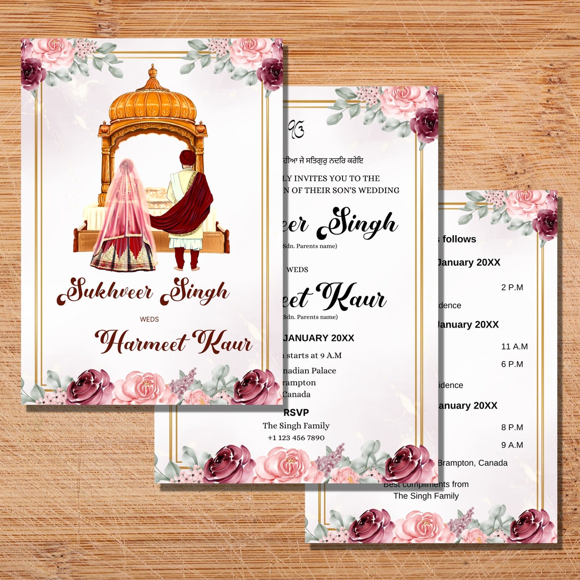 Editable Sikh Wedding Invitation Set, Floral Sikh Wedding Card, Elegant ...