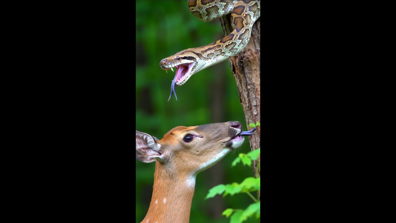 Nature's raw moment—python strikes as silence falls in the wild 🐍🦌 # ...