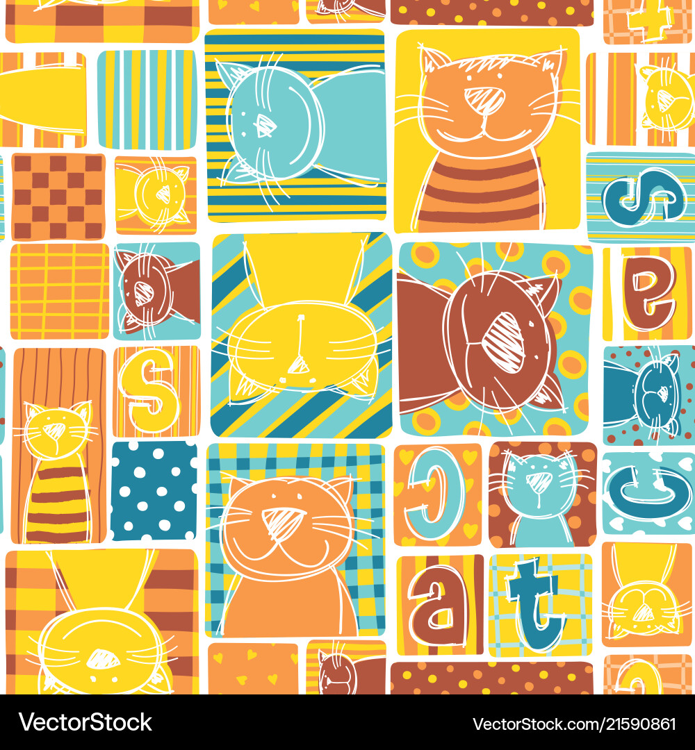 Funny cat fabric patchwork wallpaper Royalty Free Vector