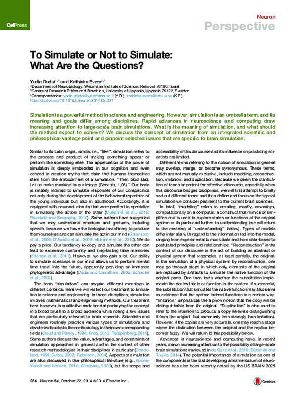 (PDF) To Simulate or Not to Simulate: What Are the Questions?