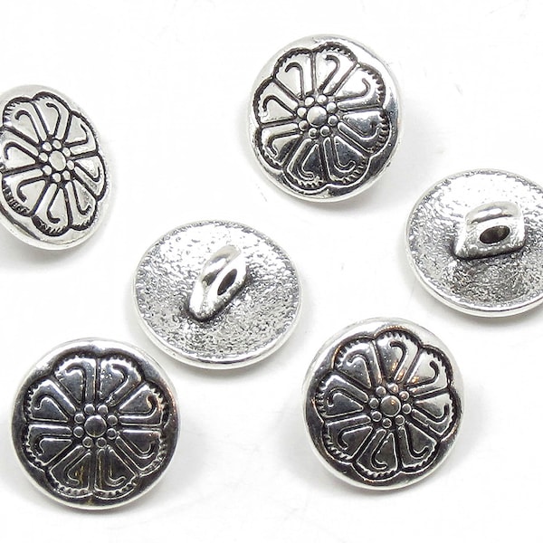 10 Silver Flower Metal Shank Buttons 15mm Silver Coat Jacket Buttons ...