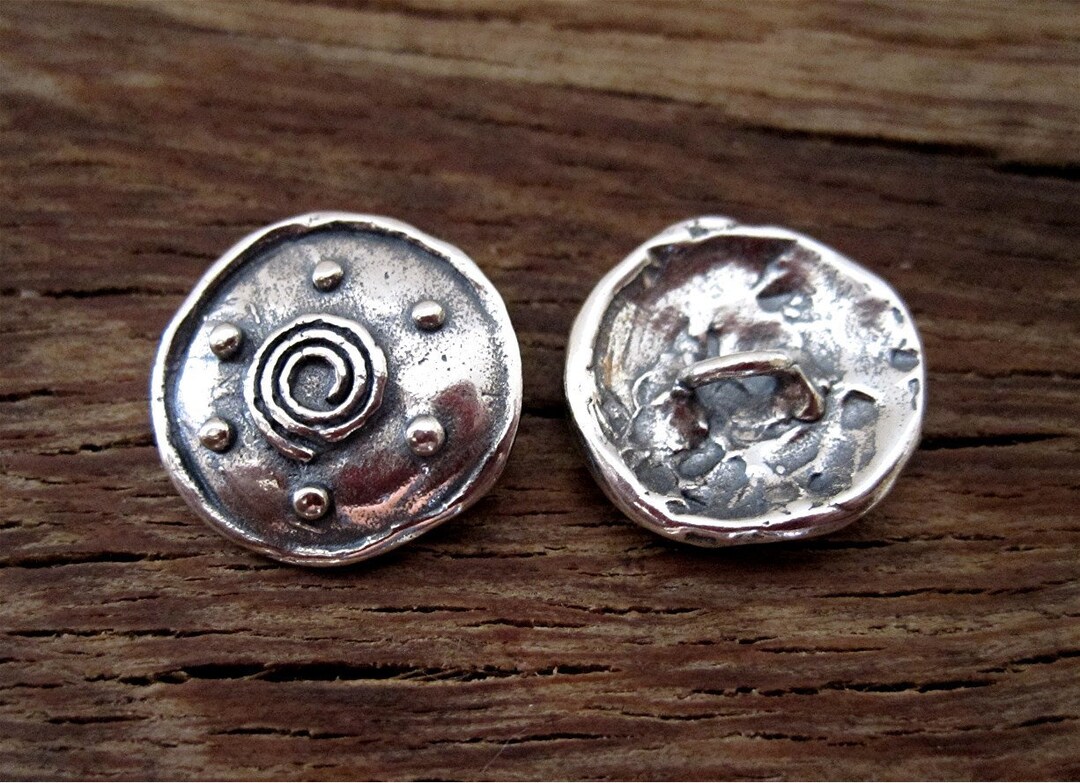 One Artisan Sterling Silver Dotted Spiral Button and Leather - Etsy