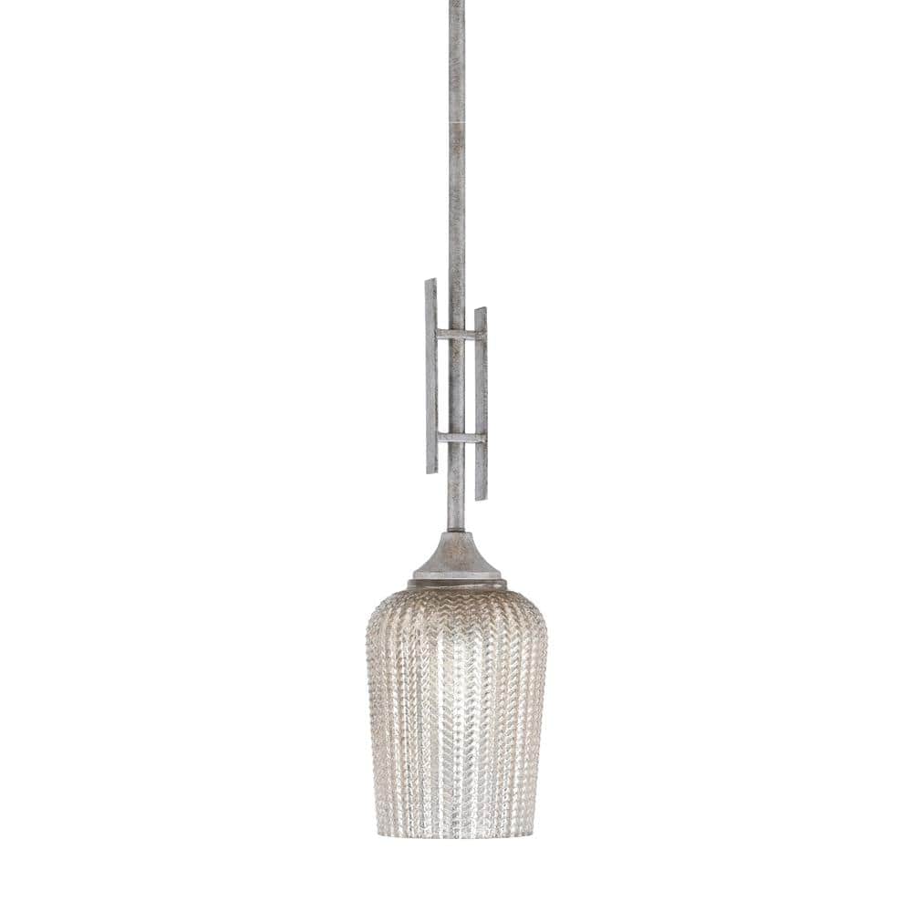 Ontario 60-Watt, 1-Light Aged Silver Stem Hung Mini Pendant Light with ...