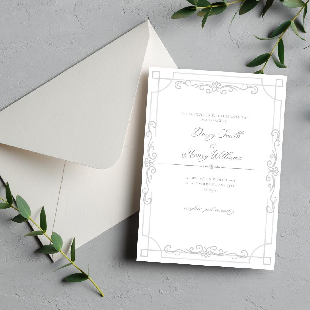 Elegant Silver Wedding Invitation Template | Printable Canva Invite ...