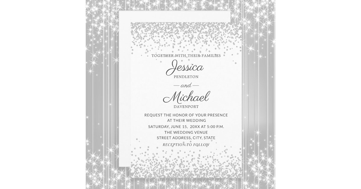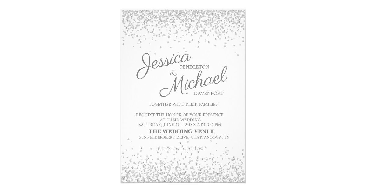 Elegant Silver Sparkle Modern Wedding Invitation | Zazzle