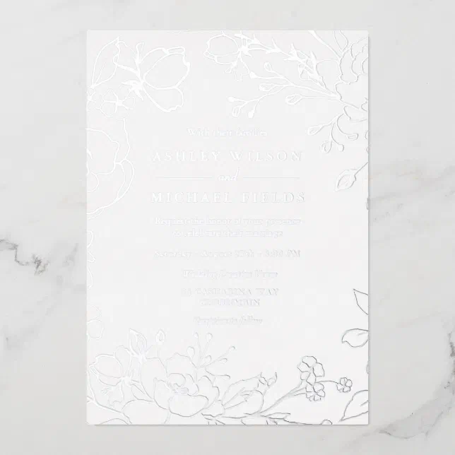 Silver Floral Elegant Modern Wedding Real Silver Foil Invitation | Zazzle