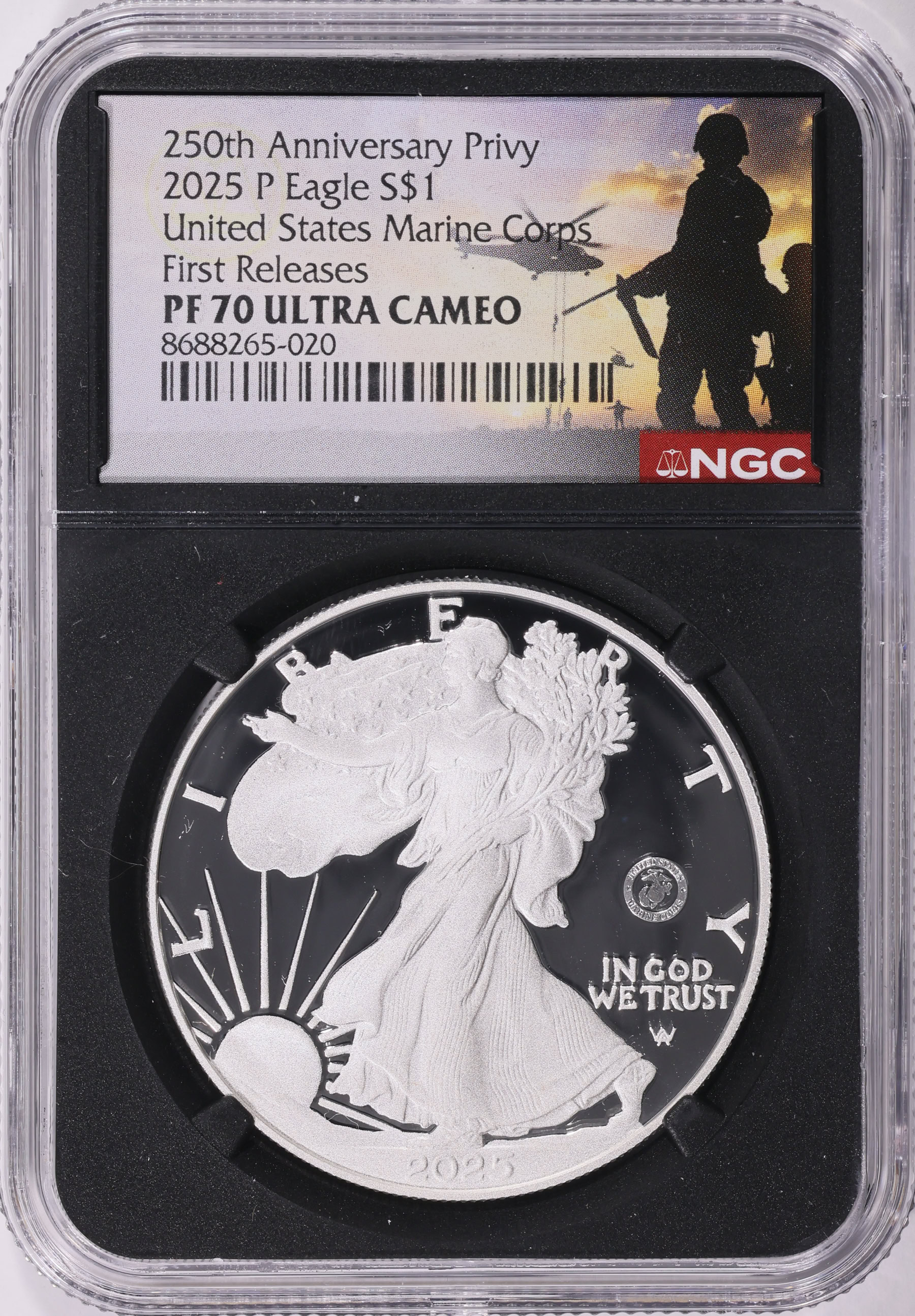 2025-P $1 Silver Eagle U.S. Marine Corps Privy 250th Anniversary First ...