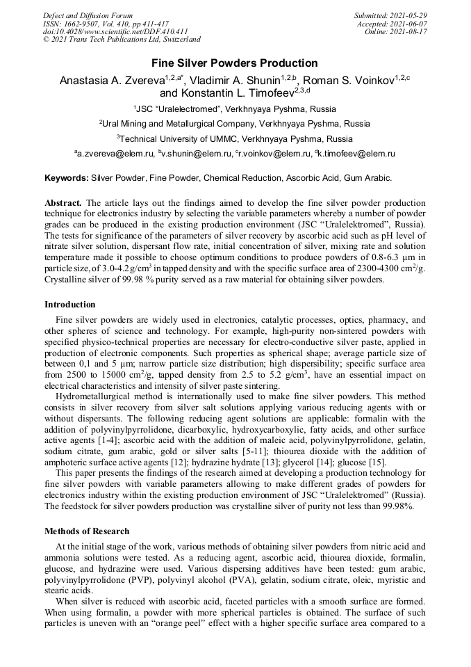 Fine Silver Powders Production | Scientific.Net