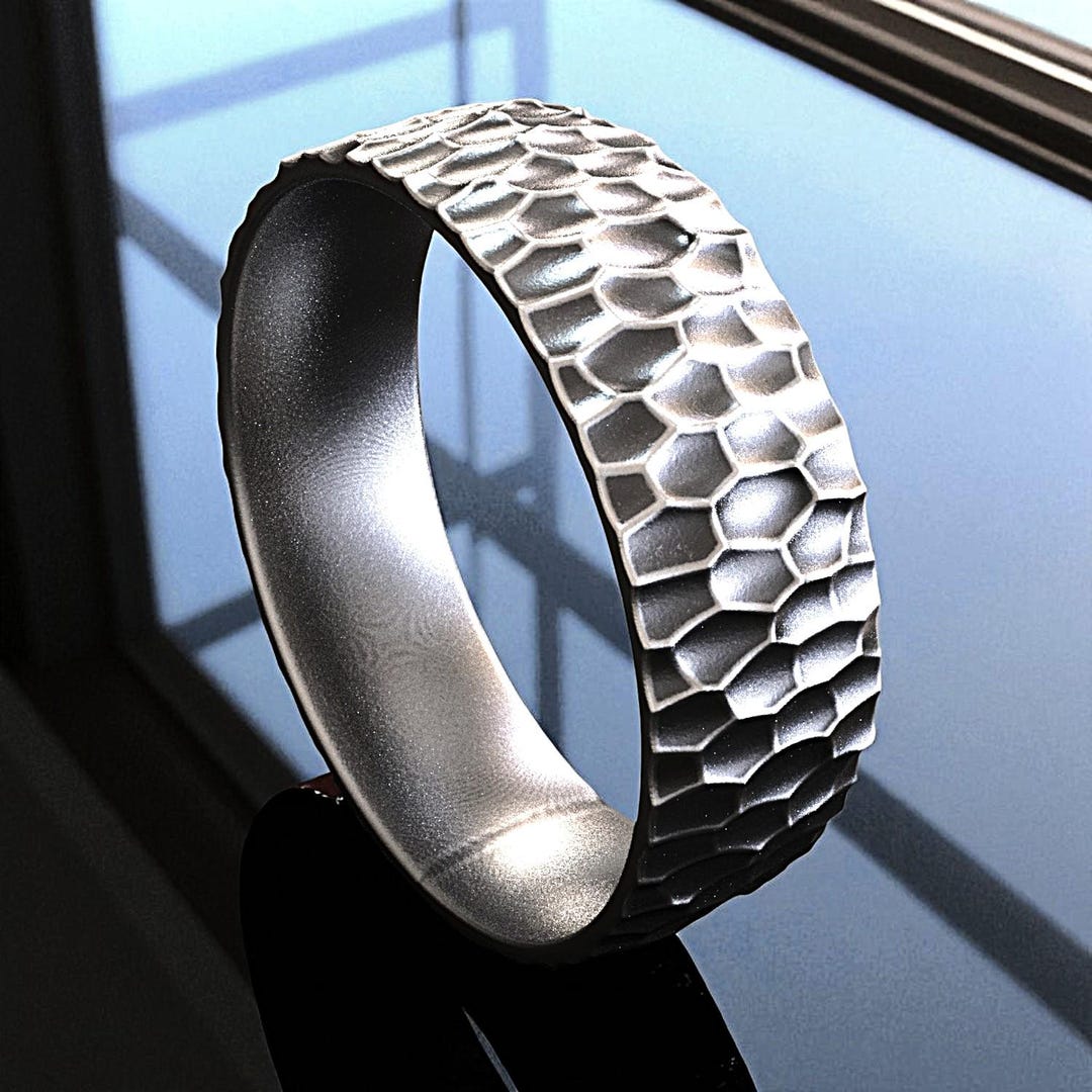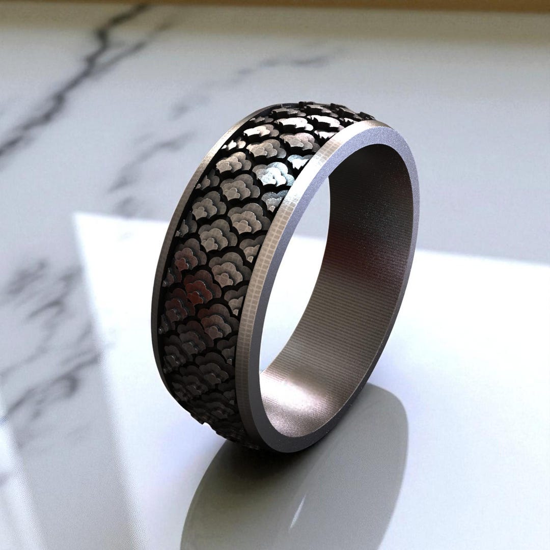 Handcrafted Sterling Silver Scale Pattern Ring, Unisex Band - Etsy