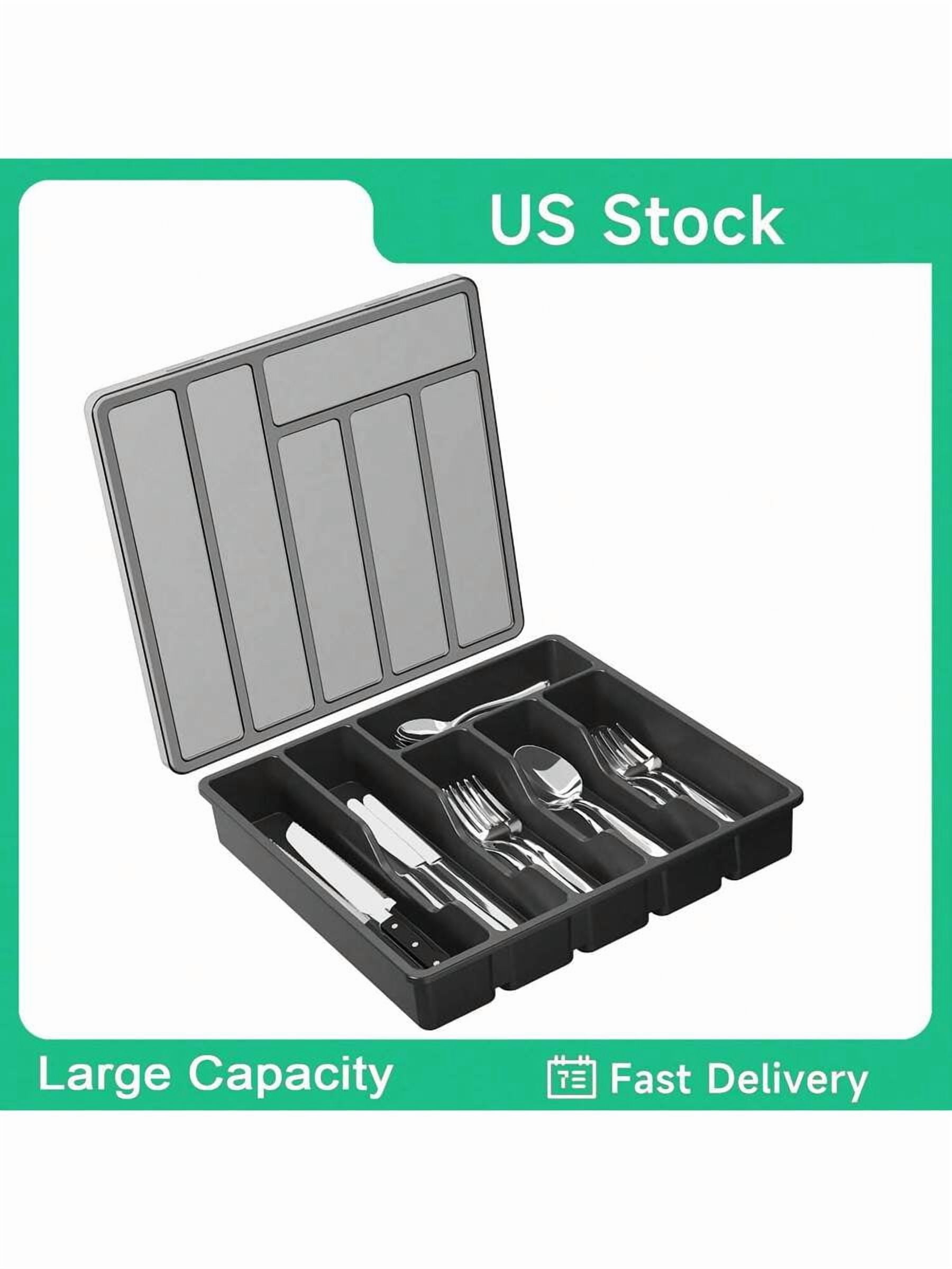 pvdgvd Plastic Silverware Organizer with Lid, 6 Spacious Compartments ...