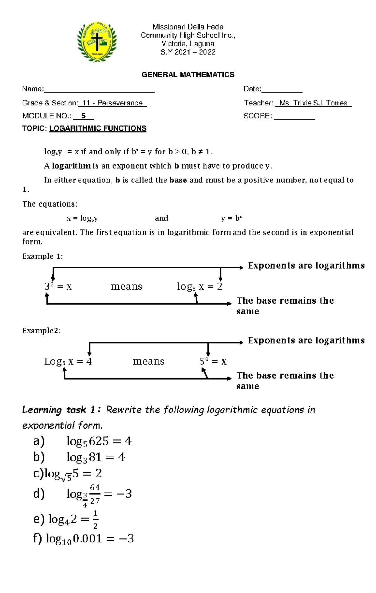Gen Math Module 8 | PDF | Logarithm | Function (Mathematics)