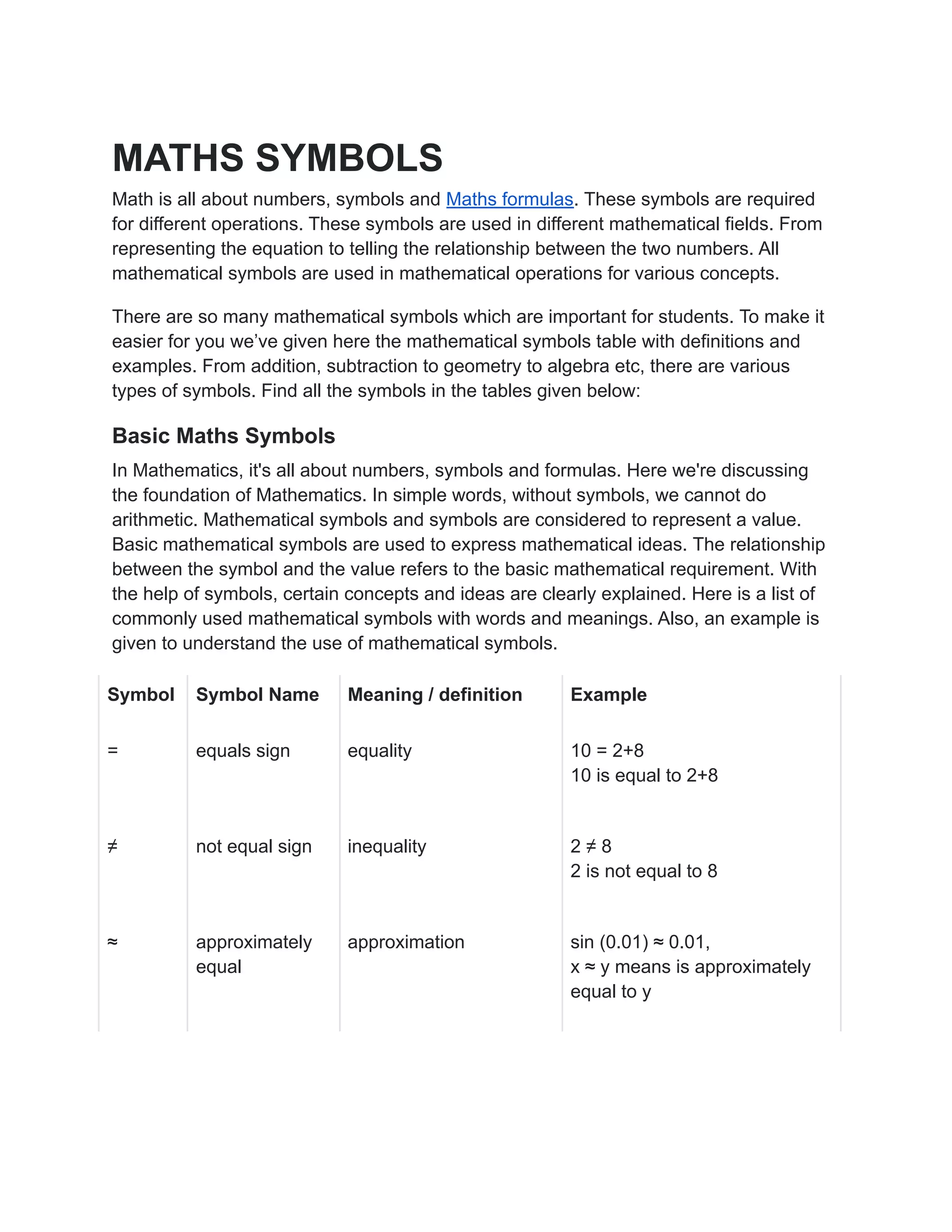 Mathematical Symbols Math Symbols List Of Symbols, Solved Examples