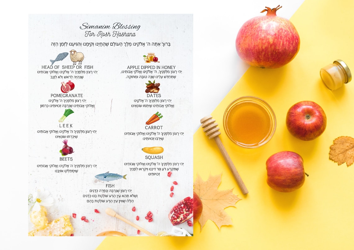Rosh Hashanah Blessings Simanim Printable Sheet, Table Decor, Jewish ...