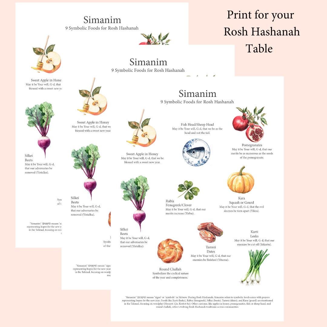 A Gift for Your Rosh Hashanah Table: Free Printable Simanim Cards ...