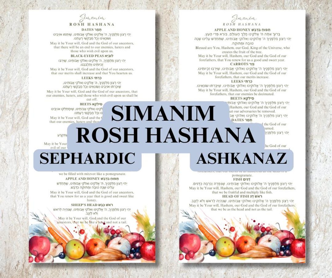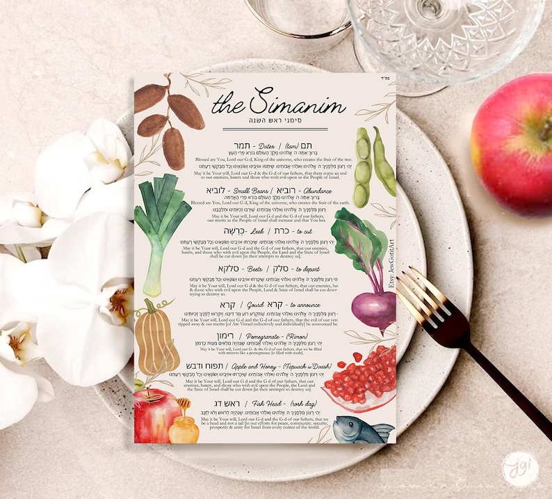 Rosh Hashanah Simanim Cards, Rosh Hashanah Symbols and Blessings - Etsy
