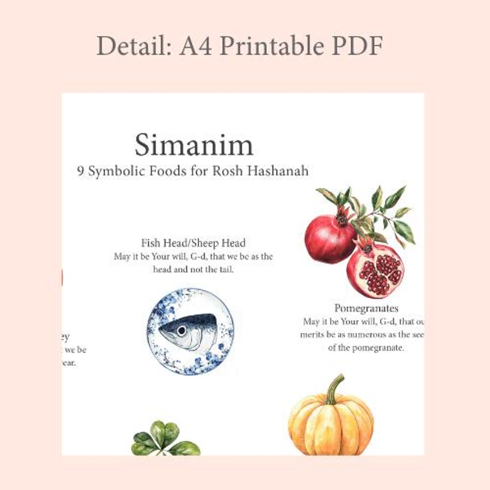 Rosh Hashanah Simanim Food Prayer Card: Jewish New Year (A4 Printable ...