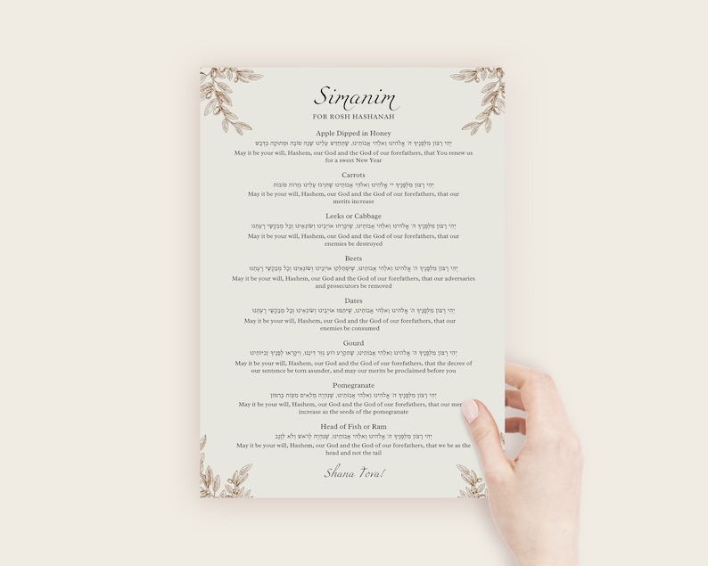 Rosh Hashanah Simanim Card - Printable Blessing Cards for Your Holiday ...