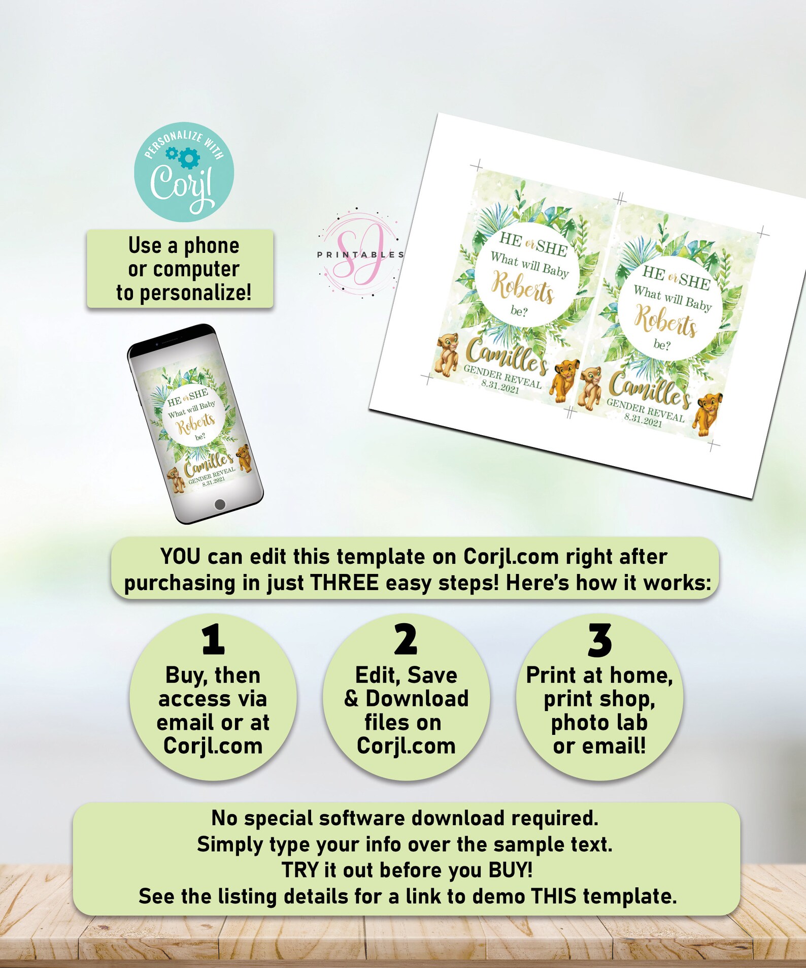 Simba and Nala GENDER REVEAL Baby Water Labels, Lion King Gender Reveal ...