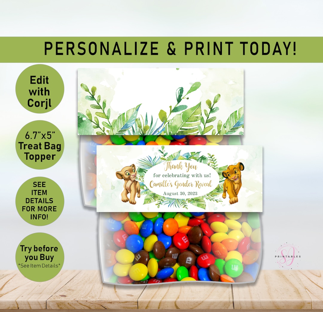 Simba and Nala Gender Reveal Treat Bag Toppers, Treat Toppers, Favor ...