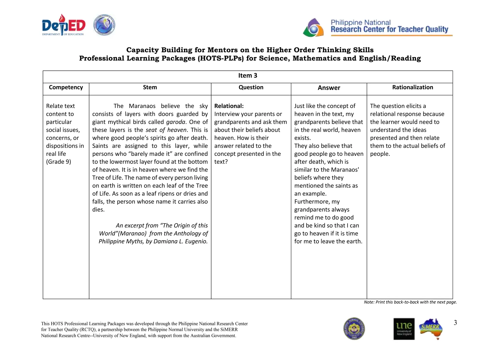 RCTQ helps develop teaching & learning resources for DepEd’s National ...