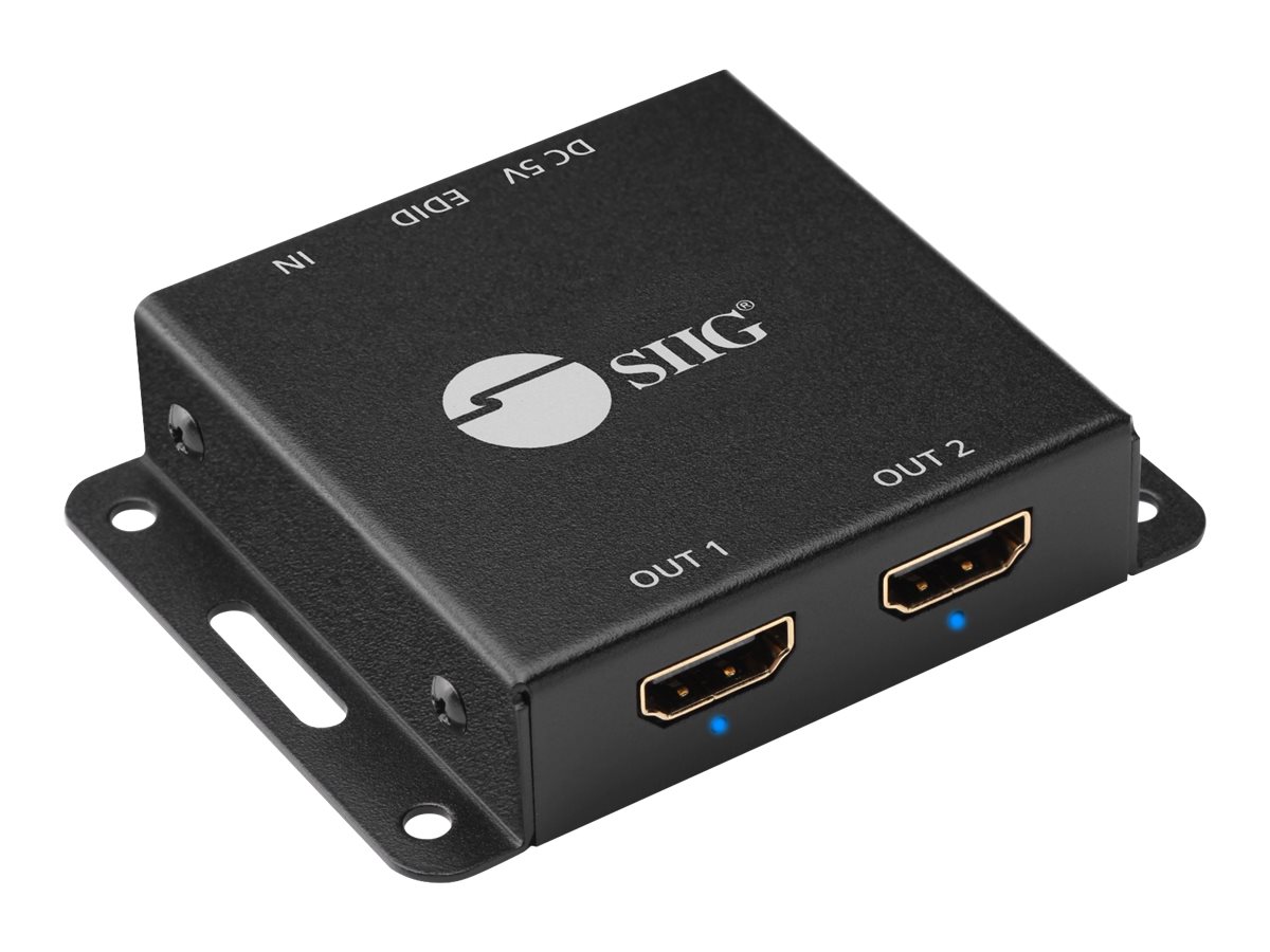SIIG 2-Port HDMI 2.0 HDR Mini Splitter Amplifier with EDID Management ...