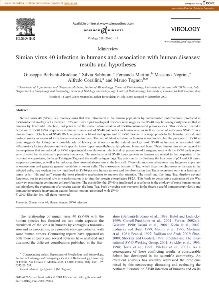 Simian Virus 40 Infection in Humans and Association With Human Diseases ...