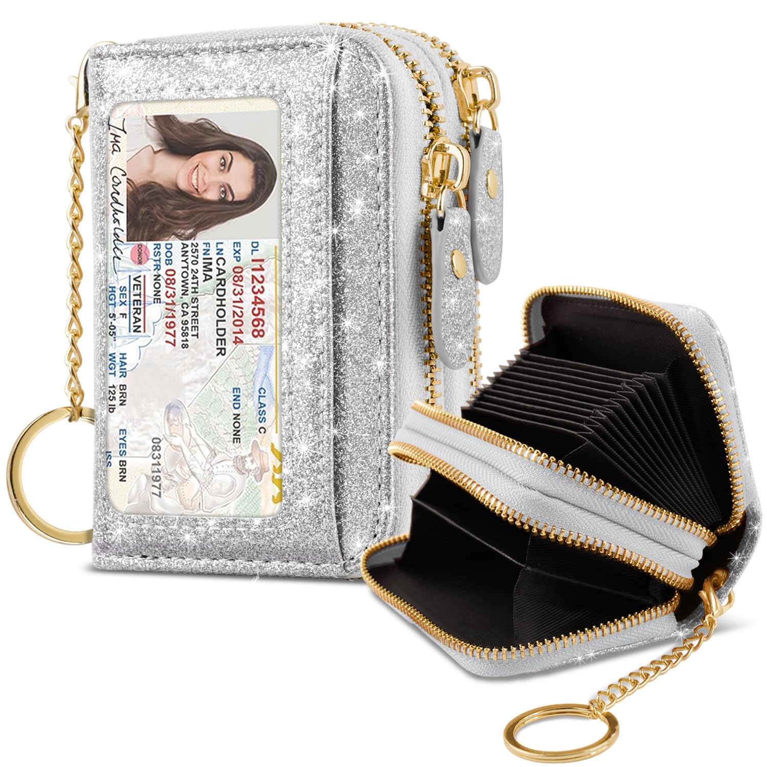 Amazon.com: Simikol Credit Card Holder Small Double Zipper Card Wallet ...
