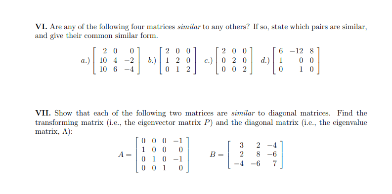 Solved VI. Are any of the following four matrices similar to | Chegg.com